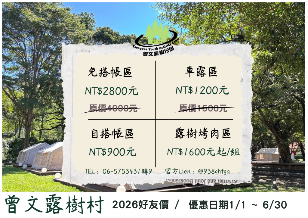 2026曾文【渼好時光】期間限定住宿特惠專案